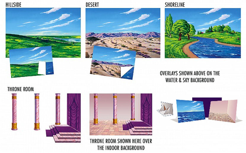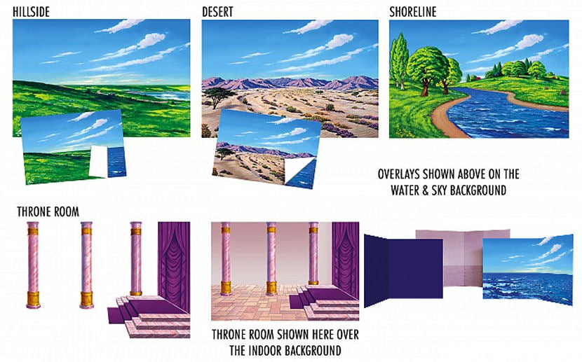 • 4 Felt Overlays - Shoreline, Desert, Hillside, Throne Room